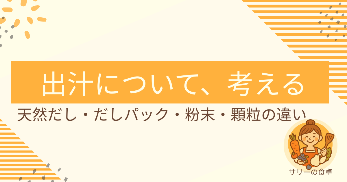 ここでは、天然だし・だしパック・粉末だし・顆粒だし、