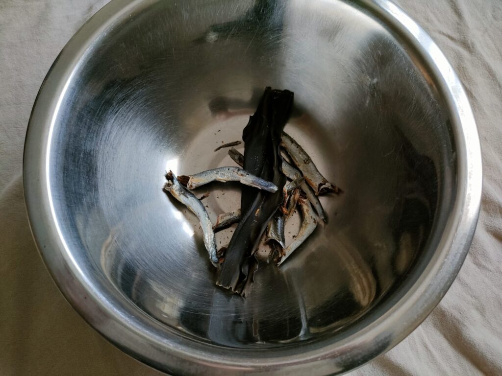 ① 昆布と煮干しを用意する